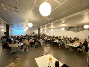 Kl.18 var farið upp í stóra salin. Har var felagssangur og kunnan um hvørji arbeiðir børnini stuðla við peningi og við forbøn. Tey stuðla Tæn Afrika, arbeiði í Tailandi, sum Ernst Magnussen er virkin í, tveimum børnum á Fillipsoyggjunum og Sat 7.